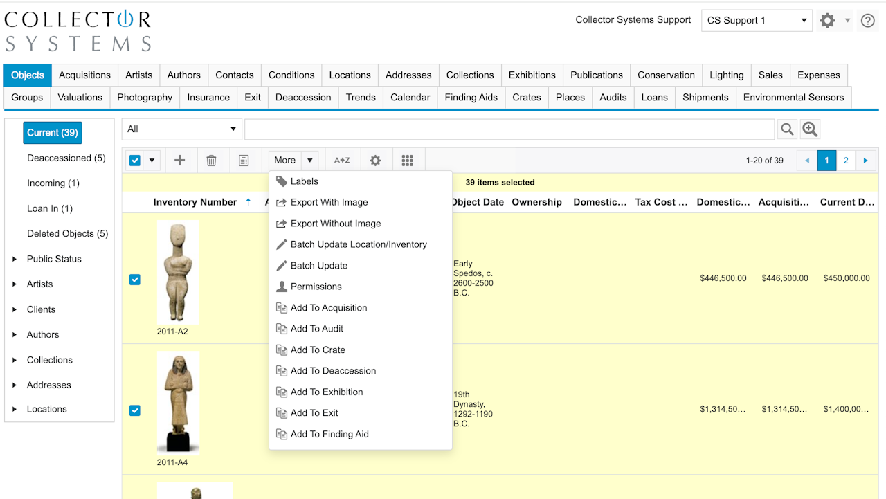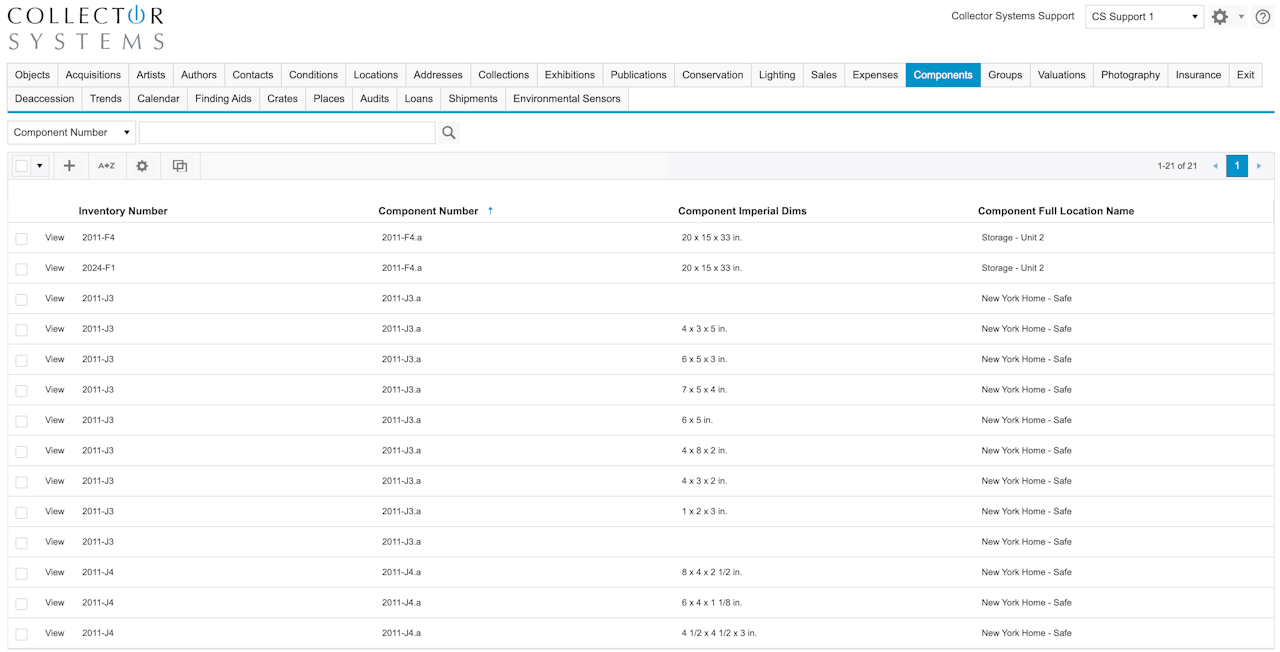 The Components tab allows users to catalog individual pieces of an Object (for example, the teacups and saucers included in a tea set).