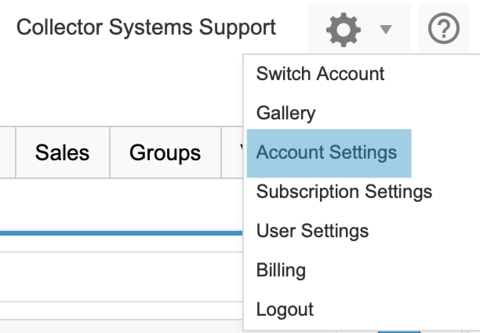 Click on the Settings icon in the upper right-hand corner of your Collector Systems screen and select Account Settings from the drop-down menu.