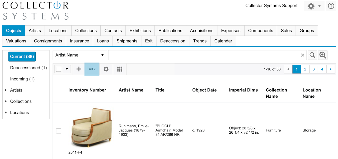 In any list view in Collector Systems, you can choose the order in which the items in your list are Sorted.