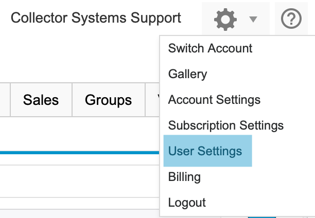 Click on the Settings icon in the top right-hand corner of your screen. Select User Settings.