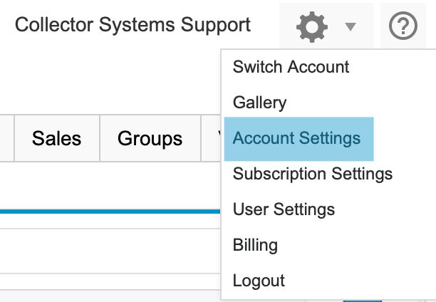 To replace the Collector Systems logo (top left) with your own, click on the Settings icon in the upper right-hand corner of your Collector Systems screen.